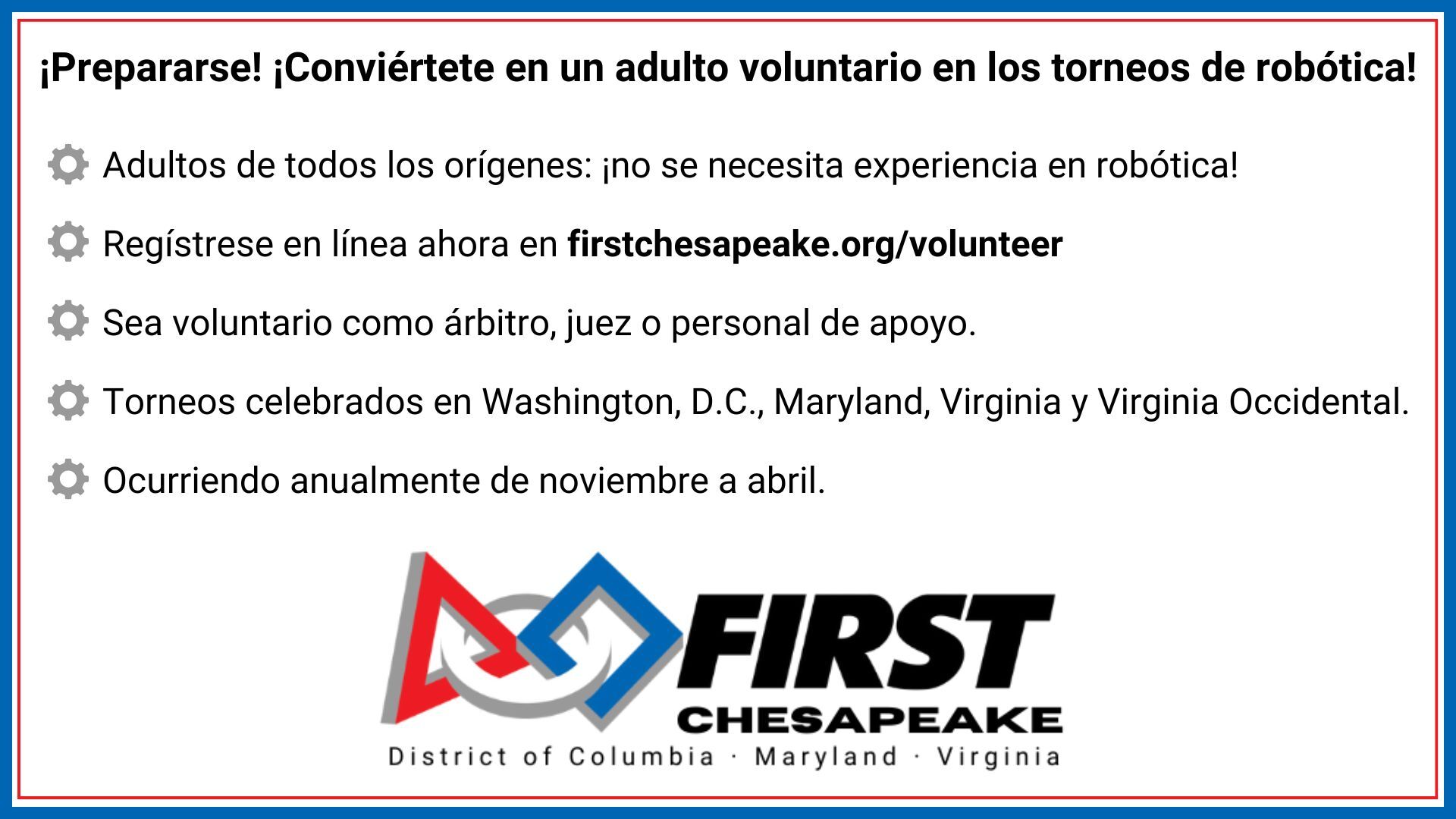 Materials are courtesy of FIRST® Chesapeake, unless otherwise noted, and FIRST Chesapeake appreciates being credited.